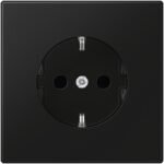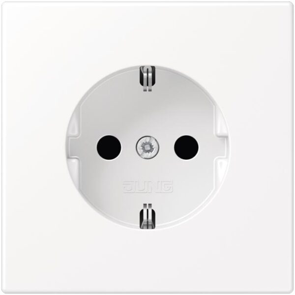 SCHUKO® Steckdose, schneeweiß matt mit Federklemmen für starre und unbehandelte flexible Leiter bis 2,5 mm2 Verbindungsklemmen nach DIN VDE 0620 Tragring, Krallen und Krallenschrauben sind über eine Erdungsschiene in die Schutzmaßnahme eingebunden. Material: Duroplast lackiert Maße (B x H): 70 x 70 mm