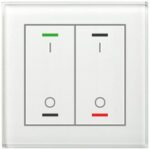 KNX Glastaster II Light 2-fach, RGBW, Temperatursensor, Weiß, Neutral. Ausführung Neutral mit 2 Tastenpaaren / 4 Sensorflächen und Temperatursensor. Umfangreiche Applikation. Die Tasten sind als Tastenpaar oder Einzeltasten frei einstellbar. Ein- und Zweitasterbetrieb für Schalten, Dimmen, Jalousie, Werte. Umschalten von bis zu vier Werten oder Szenen. Kurzer/Langer Tastendruck mit 2 Objekten. Mehrfach-Tippfunktion sendet bis zu 4 Werte auf gleiche oder verschiedene Objekte. Innovative Gruppensteuerung mit langem/extra langem Tastendruck. Patschfunktion mit zusätzlichem Schaltobjekt. Vier RGBW Status-LEDs. LED Helligkeit über Tag/Nacht- oder Helligkeit-Objekt steuerbar. 4 Logikblöcke. Einbau in Schalterdose mit mitgeliefertem Tragring. Abmessungen (H x B): 92 x 92 mm. Integrierter Busankoppler. 3 Jahre Produktgarantie.