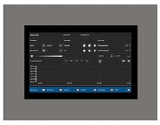 KNX Touch Panel VisuControl, Display 17,7 cm / 7 Zoll. Zur Visualisierung der aktuellen Gebäudezustände und interaktiven Steuerung von Gebäudefunktionen. Kapazitives Glas-Touchdisplay mit LED-Backlight. Bedienoberfläche individuell einstellbar. Schalten, Dimmen, Jalousien. Fernzugriff über PC, Tablet oder Smartphone. VisuControl für KNX App kostenlos im App Store erhältlich. Alarmmeldungen. Diagramme. Versenden von Meldungen per E-Mail. Inklusive VisuControl lite Software und Musterprojekten. Spannungsversorgung 24 V DC erforderlich (z.B. STV-0024.01). Integrierter Busankoppler. 3 Jahre Produktgarantie.