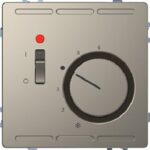Für System Design. Für spannungslos geschlossene elektromotorische Stellantriebe. Bereichsbegrenzung im Einstellknopf integriert. Mit Schraubbefestigung. Mit Steckklemmen. Funktionen -Mit Ein-/Ausschalter und Kontrollleuchte. 1xSchließerkontakt. Schaltdifferenz 0,5 K. Temperaturbereich ca. 5-30 GradC. Anschluss für zeitgesteuerte Nachtabsenkung um ca. 4 K. Mit thermischer Rückführung. Nennspannung AC 230 V. Nennstrom (Ohmsch) 10 A. Nennstrom (Induktiv) 4 A, cos Phi 0,6. Schaltleistung Heizen 2200 W. Material Thermoplast lackiert. Farbe Edelstahl.