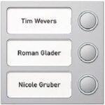 Für modulare Türstationen und Briefkastensysteme. Steuerelektronik für die Adressierung der Klingeltasten. Namensschilder über LED beleuchtet und beschriftbar. Steckbare Busverbinder zum Anschluss an die Buslinie der Türstation. Stecker zum Anschluss weiterer Funktionsmodule. Einbauabmessungen 95x95x33 mm (BxHxT). Abmessungen Schriftfeld 56×37 mm (BxH). Zubehör Rückmeldeplatine 18799xx für akustische Rückmeldung. Farbe silber.