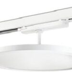 Leuchte für die Allgemeinbeleuchtung für das 3-Phasen-Schienensystem ShopLine. Die Leuchte kann auch mit anderen Schienensystemen genutzt werden, die für Global-Adapter geeignet sind. Die stilvolle flache, runde Leuchte mit prismatischer Opalabdeckung sorgt für eine gleichmäßige Lichtverteilung und eine geringe Blendung. Der Treiber ist in den Schienenadapter integriert.