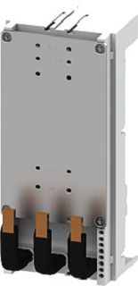 Geräteadapter, 3polig, 125 A, ohne Befestigungsschrauben für 3VA51, 3VA10, 3VA11 Schienenabstand 60mm 200 x 90 mm Geräteanschluss unten Geräteklemmen müssen getrennt bestellt werden für 3VA51: 3VA9133-0JA11 oder 3VA9133-0JB11 Sammelschienensystem 8US für den Aufbau von Schutzgeräten wie Sicherungslasttrennschalter und Leistungsschalter – sicher, platzsparend, übersichtlich. Der Einsatz der Siemens Sammelschienensysteme 8US bietet vielfältige Möglichkeiten zur Installation von schienenadaptierbaren Anschluss-, Schalt- und Installationsgeräten. Durch die platzsparende Modulbauweise und Schnellmontage-Kontaktierung ist eine wirtschaftliche elektrotechnische Bestückung im heutigen Installationsverteilerbau sichergestellt. Die Montage erfolgt auf Längsholmen, der Schienenabstand beträgt 60 mm. Die Siemens Sammelschienensysteme 8US zeichnen sich vor allem aus durch: 1. Mechanische Befestigung und elektrische Kontaktierung in einem Arbeitsgang. 2. Weltweite Zulassung und somit weltweite Einsatzmöglichkeiten im Maschinen- und Anlagenbau. 3. Einfaches Auswechseln von Einzelgeräten oder ganzen Kombinationen. 4. Montagezeitersparnis und Kostenreduzierung durch fertig montierte Verbraucherzweige. 5. Hohe Betriebssicherheit durch fingersichere Abdeckung der Adapter und Geräteträger. 6. Große Bandbreite an einsetzbaren Sammelschienen für eine einfache Anpassung an Stromstärken bis 1.600 A. Max