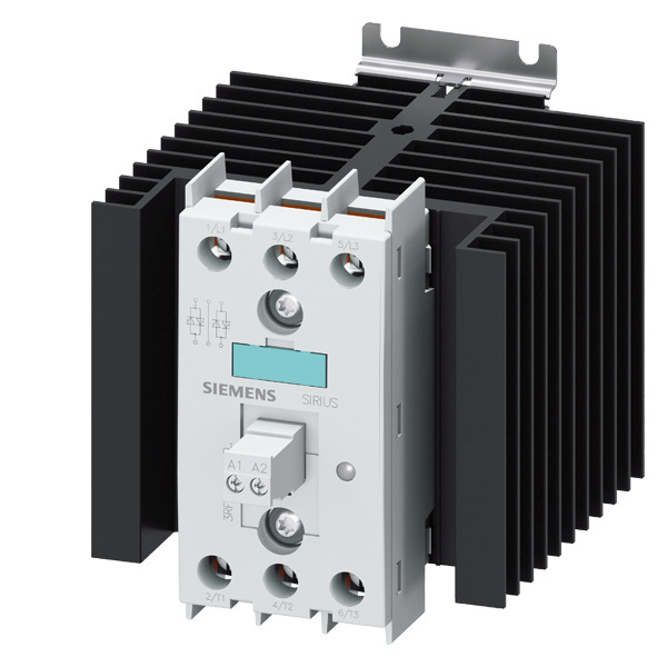 Halbleiterschütz 3-phasig 3RF2 AC 51 / 40 A / 40 °C 48-600 V / DC 4-30 V 2-Phasengesteuert Schraubanschluss Sperrspannung 1200 V Halbleiterschütz SIRIUS 3RF24 zum Schalten von ohmschen/induktiven Lasten, z. B. von Heizkörpern oder Ventilen in einer Abfüllanlage. Die Geräte schalten verschleißfrei und lautlos und sind daher ideal für geräuschsensible Bereiche (Büros, Krankenhäuser). Sie sind auch bei hohen Schaltfrequenzen äußerst zuverlässig. Da der Kühlkörper bereits integriert ist, können sie direkt im Schaltschrank eingesetzt werden. Die kompakte Bauweise spart Platz auf der Hutschiene. Die Halbleiterschütze lassen sich zudem durch die standardisierten Funktionsmodule 3RF29 für vielfältige Anwendungen durch einfaches Aufklicken erweitern. Die Geräte sind weltweit zugelassen (z.B. IEC und UL/CSA). Die Halbleiterschütze sind als 1-phasige oder 3-phasige Geräte verfügbar. Sie sind für verschiedene Leistungen und Bemessungsbetriebsspannungen erhältlich. Ausgelegt für AC- oder DC-Betätigung stehen sie mit Schraub-, Federzug- oder Ringkabelschuhanschluss zur Verfügung. Als Zubehör stehen neben den Funktionsmodulen 3RF29 auch Steuerstecker und Klemmenabdeckungen zur Verfügung. Einfach, effizient, immer aktuell – der SIRIUS Systembaukasten.