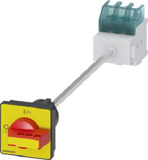 SENTRON, Lasttrennschalter 3LD, Not-Aus-Schalter, 3-polig, Iu: 32 A, Betriebsleistung / bei AC-23 A bei 400V: 11,5 kW, Bodenbefestigung mit Türkupplung, überlistbarer Knebelantrieb, rot/gelb, 4-Loch Befestigung der Handhabe Haupt- und NOT-AUS-Schalter SENTRON 3LD2 für das sichere Abschalten von Lasten in vielen Bereichen, z.B. für Drehstrommotoren, Klima- und Lüftungsanlagen, in Be- und Verarbeitungsmaschinen des Maschinen- und Förderanlagenbaus, in der chemischen oder in der Nahrungsmittel- und Getränkeindustrie. Modularer Aufbau, schnelle einfache Montage von Hilfsschaltern, N-PE-Klemme oder 4. Pol. Optimale Netztrennung von 16 A bis 250 A durch Abschließbarkeit des Drehantriebes. Schutzart bis IP 65 mit gekapseltem Gehäusefür Anwendungen im Freien. Vielseitig und weltweit einsetzbar dank internationaler IEC-, UL-, CCC- sowie Schiffbau-Approbationen. Die Haupt- und NOT-AUS-Schalter 3LD sind in vielfältigen Varianten erhältlich für Frontbefestigung, Montageplatte, Hutschiene oder Verteilereinbau, wahlweise mit Direkt- oder Türkupplungs-Drehantrieb. Bei 3LD2 sind auch Varianten für Gleichstromanwendungen verfügbar. Haupt- und NOT-AUS-Schalter 3LD – Durchgängige Sicherheit für Anwender und Systeme. Bemessungsdauerstrom bei AC-23, 400 V: 22 A