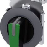 Knebelschalter, beleuchtbar, 30 mm, rund, Metall, matt, weiß, Knebel, kurz, Frontring für flachen Einbau, 3 Schaltstellungen I>O<II, tastend, Schaltwinkel 2×45°, 10:30h/12h/13:30h Knebelschalter SIRIUS ACT zur Schaltung und Steuerung elektrischer Verbraucher. Unter dem Markennamen SIRIUS ACT bietet Siemens ein einzigartiges Portfolio an Befehls- und Meldegeräten mit weltweiten Produkt-Zulassungen in drei modernen Designreihen aus robustem Echtmetall und hochwertigem Kunststoff.Das innovative Aufschnappkonzept vereinfacht die Montage so weit, dass dafür nur eine Hand und kein Spezialwerkzeug erforderlich ist. Als Montagebohrungen genügen nutfreie Löcher, da bereits ein 100%iger Verdrehschutz integriert ist.Dank der durchgängig hohen Schutzart sind die robusten Geräte industrietauglich und für den Außeneinsatz geeignet. Sogar die Reinigung mit Hochdruckstrahl ist möglich. Weder Staub, Öle noch aggressive Laugen können den zuverlässigen Betrieb stören.Neben der Standardverdrahtung können die meisten Geräte auch über PROFINET, AS-Interface oder IO-Link an die Steuerung angebunden werden. Damit reduzieren Sie Ihren Verdrahtungsaufwand, minimieren Fehlerquellen und gewinnen mehr Flexibilität.Komfortabel unterstützt der grafische Online-Konfigurator bei Auswahl und Bestellung von Einzelgeräten, Gehäusen und Beschriftungen. Umfangreiche Dokumentation (z.B. Handbuch, 3D-Daten, Anschlussdiagramm) ist verfügbar. Lieferbare Ausführungen: mehrere Farben, 2-4 Schaltstellungen, kurzer/langer Knebel oder Drehknopf, beleuchtet/unbeleuchtet (Beleuchtung auch nachrüstbar), verrastende/tastende Betätigung. Hinweis: Einzelgerät, Halter und Module bitte extra bestellen. SIRIUS ACT – Performance in Action beim Befehlen und Melden. Einfach montiert, einfach stark, einfach perfekt