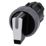 Knebelschalter, beleuchtbar, 22 mm, rund, Kunststoff mit Metallfrontring, grün, Knebel, kurz, 3 Schaltstellungen I>O-II, links tastend, rechts verrastend, Schaltwinkel 2×45°, 10:30h/12h/13:30h Knebelschalter SIRIUS ACT zur Schaltung und Steuerung elektrischer Verbraucher.Unter dem Markennamen SIRIUS ACT bietet Siemens ein einzigartiges Portfolio an Befehls- und Meldegeräten mit weltweiten Produkt-Zulassungen in vier modernen Designreihen aus robustem Echtmetall und hochwertigem Kunststoff.Das innovative Aufschnappkonzept vereinfacht die Montage so weit, dass dafür nur eine Hand und kein Spezialwerkzeug erforderlich ist. Als Montagebohrungen genügen nutfreie Löcher, da bereits ein 100%iger Verdrehschutz integriert ist.Dank der durchgängig hohen Schutzart sind die robusten Geräte industrietauglich und für den Außeneinsatz geeignet. Sogar die Reinigung mit Hochdruckstrahl ist möglich. Weder Staub, Öle noch aggressive Laugen können den zuverlässigen Betrieb stören.Neben der Standardverdrahtung können die Geräte auch über PROFINET, AS-Interface oder IO-Link an die Steuerung angebunden werden. Damit reduzieren Sie Ihren Verdrahtungsaufwand, minimieren Fehlerquellen und gewinnen mehr Flexibilität.Komfortabel unterstützt der grafische Online-Konfigurator bei Auswahl und Bestellung von Einzelgeräten, Gehäusen und Beschriftungen. Umfangreiche Dokumentation (z.B. Handbuch, 3D-Daten, Anschlussdiagramm) ist verfügbar.Lieferbare Ausführungen: mehrere Farben, 2-4 Schaltstellungen, kurzer/langer Knebel oder Drehknopf, beleuchtet/unbeleuchtet (Beleuchtung auch nachrüstbar), verrastende/tastende Betätigung.Hinweis: Einzelgerät, Halter und Module bitte extra bestellen.SIRIUS ACT – Performance in Action beim Befehlen und Melden. Einfach montiert, einfach stark, einfach perfekt