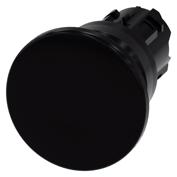Pilzdrucktaster, 22 mm, rund, Kunststoff, schwarz, 40 mm, tastend Pilzdrucktaster SIRIUS ACT mit großer Handhabe zur komfortablen Betätigung mit der ganzen Hand. Unter dem Markennamen SIRIUS ACT bietet Siemens ein einzigartiges Portfolio an Befehls- und Meldegeräten mit weltweiten Produkt-Zulassungen in drei modernen Designreihen aus robustem Echtmetall und hochwertigem Kunststoff.Das innovative Aufschnappkonzept vereinfacht die Montage so weit, dass dafür nur eine Hand und kein Spezialwerkzeug erforderlich ist. Als Montagebohrungen genügen nutfreie Löcher, da bereits ein 100%iger Verdrehschutz integriert ist.Dank der durchgängig hohen Schutzart sind die robusten Geräte industrietauglich und für den Außeneinsatz geeignet. Sogar die Reinigung mit Hochdruckstrahl ist möglich. Weder Staub, Öle noch aggressive Laugen können den zuverlässigen Betrieb stören.Neben der Standardverdrahtung können die meisten Geräte auch über PROFINET, AS-Interface oder IO-Link an die Steuerung angebunden werden. Damit reduzieren Sie Ihren Verdrahtungsaufwand, minimieren Fehlerquellen und gewinnen mehr Flexibilität.Komfortabel unterstützt der grafische Online-Konfigurator bei Auswahl und Bestellung von Einzelgeräten, Gehäusen und Beschriftungen. Umfangreiche Dokumentation (z.B. Handbuch, 3D-Daten, Anschlussdiagramm) ist verfügbar. Lieferbare Ausführungen: 30/40/60 mm Pilz-Durchmesser, mehrere Farben, beleuchtet/unbeleuchtet, verrastende/tastende Betätigung, Zug-/Drehentriegelung. Hinweis: Einzelgerät, Halter und Module bitte extra bestellen. SIRIUS ACT – Performance in Action beim Befehlen und Melden. Einfach montiert, einfach stark, einfach perfekt.