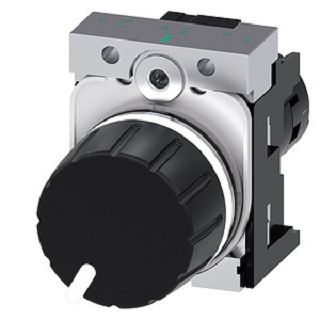 Siemens Potentiometer, 22mm, rund, Metall, hochglanz, schwarz, 10K Ohm 3SU12502PS101AA0