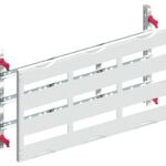 Innenausbau Modul, CombiLine, Bausatz unmontiert, für DIN Reiheneinbaugeräte, Rasteinheit 1 RE = 150 mm, Feldbreite 1 = 250 mm, 12 Platzeinheiten, Reihenabstand: 125 / 150, Ausbau mit Hutprofilschiene 35 x 15 mm mit Lochung für Drahthalter, für Einbaugeräte nach DIN 43880, Abdeckungen aus Kunststoff, 90 Grad Druck-Drehverschluss, RAL 7035, Ausführung der Abdeckung: mit Ausschnitt, einsetzbar ab einer Schranktiefe von 120 mm, EDF oder WR Montagegerüst muss separat bestellt werden